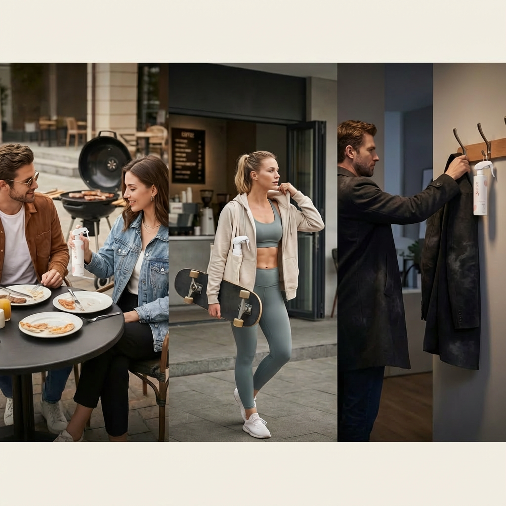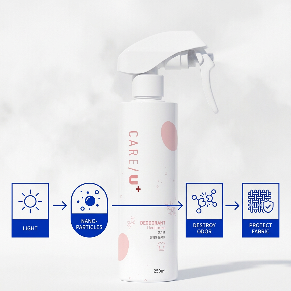 Our formula contains nano-calcium oxide photocatalyst. Under light, it generates hydroxyl radicals to decompose odor molecules completely—not just mask them.After spraying, a dense nano-coating forms on fabrics to provide 24/7 antibacterial protection.