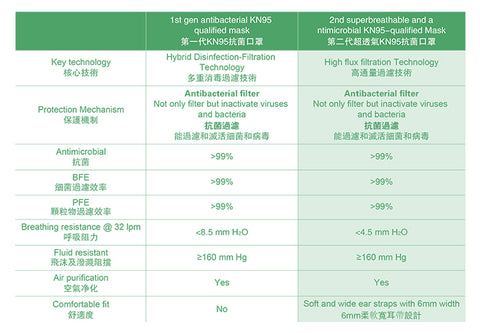 第一代 KN95 抗菌口罩與第二代超透氣 KN95抗菌口罩對比