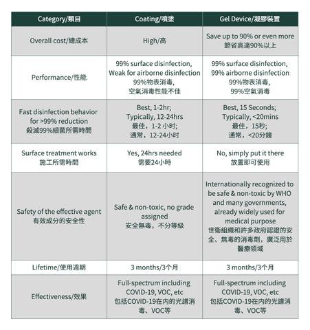 · 去除99.9% 的空氣中傳播和物表附著的病毒和細菌